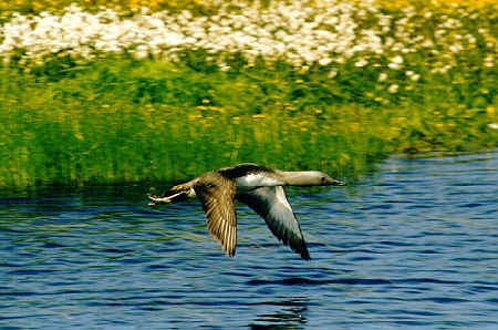 A Red Throated Diver in flight. These birds are quite common & breed in this area.