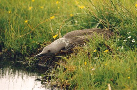 A Red Throated Diver ready to slip quietly into the water should you come too close.