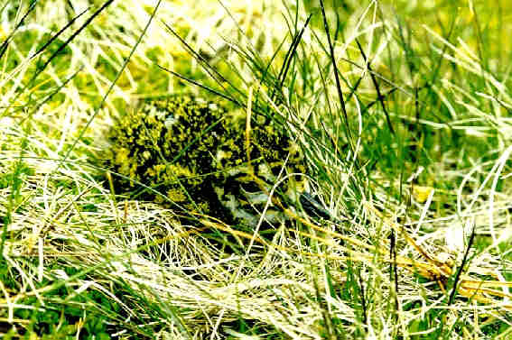 A baby Lapwing shows perfect camouflage in the grass.